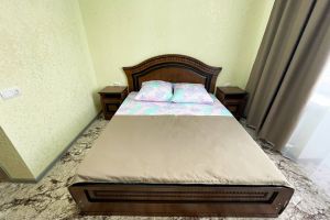 - двуспальная кровать, прикроватные тумбочки, шкаф, стол, стулья, вешалка, зеркало