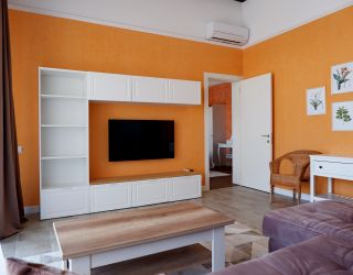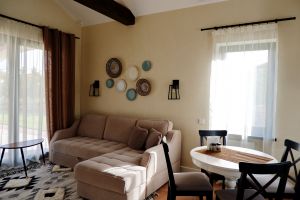 - Две двуспальные кровати, две односпальные кровати, диван, оборудованная кухня, стиральная машина, три санузла, терраса, открытый не подогреваемый бассейн