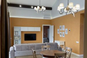 - Кровать двуспальная, диван, оборудованная кухня, стиральная машина, с/у, терраса