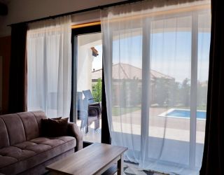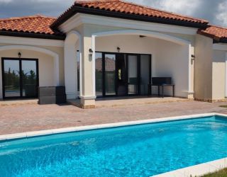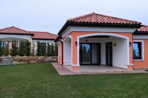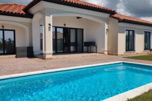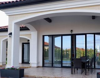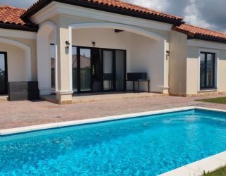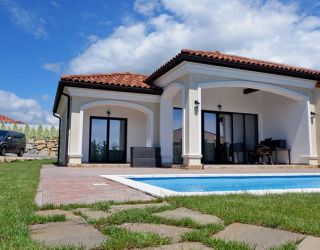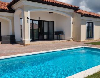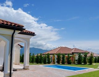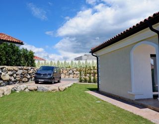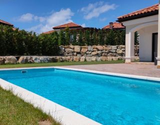 Вилла расположена на земельном участке площадью 600 м2, на территории есть открытый не подогреваемый бассейн размером 7,5 м х 3,5 м х 1,85 м, одно парковочное на место для автомобиля.