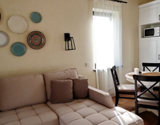 Дополнительное спальное место – раскладной диван в кухне-гостиной.