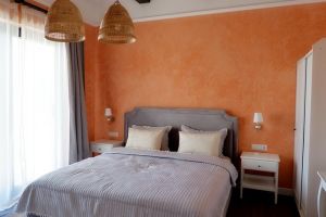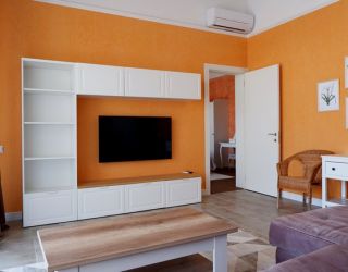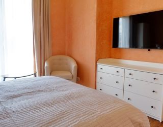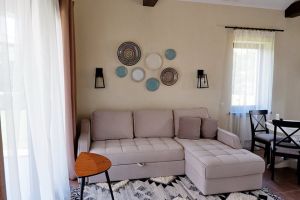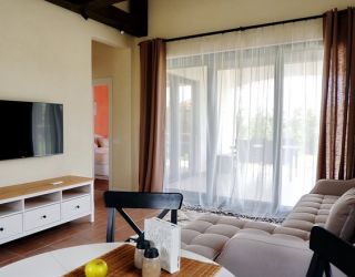 В вилле «Афродита» одна спальня с двуспальной кроватью, раздельный санузел и гостиная, совмещённая с кухней. Из спальни и гостиной есть выход на большую крытую террасу с панорамными видами на морскую бухту. Дополнительное спальное место – раскладной диван в кухне-гостиной. Вилла расположена на земельном участке площадью 600 кв. м, на территории предусмотрено парковочное на место для одного автомобиля.