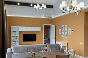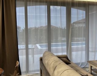 В ней три спальни, три санузла и просторная гостиная с выходом на террасу.