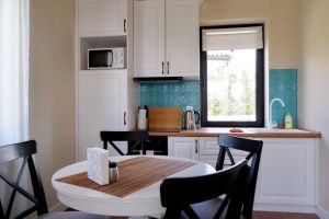 Комплекс занимает благоустроенную территорию площадью более 90 гектаров. Для размещения гостям предлагаются две комфортабельные виллы, выстроенные в средиземноморском стиле, рассчитанные на размещение от 4 до 8 гостей. В них есть все необходимое для проживания: уютные спальни, санузлы с ванной или душем,кухни, оборудованные техникой, в том числе есть стиральная машина и электроплита.Дома оборудованы большими панорамными террасами, с которых открываются живописные виды на морскую бухту и горы Главного кавказского хребта.
