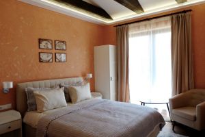 В вилле «Афродита» одна спальня с двуспальной кроватью, раздельный санузел и гостиная, совмещённая с кухней. Из спальни и гостиной есть выход на большую крытую террасу с панорамными видами на морскую бухту.
