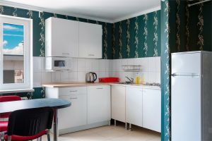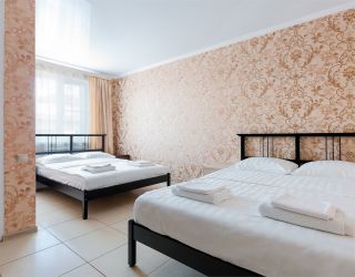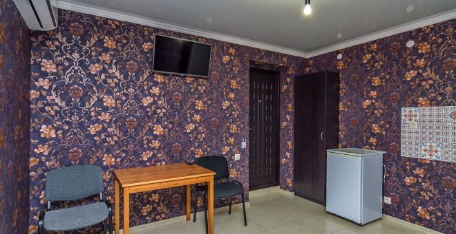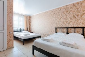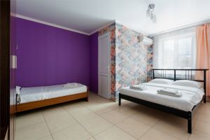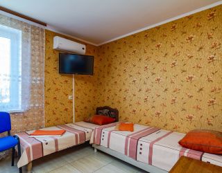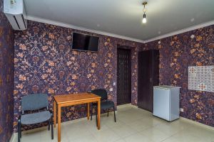 - Двуспальная кровать — 3 шт. и односпальная кровать, мебельный гарнитур, тумбочки прикроватные, холодильник, кондиционер, телевизор, 2 комнаты, санузел, КУХНЯ
