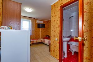 - Кровати двуспальная и односпальная , мебельный гарнитур, тумбочки прикроватные, холодильник, кондиционер, телевизор, санузел