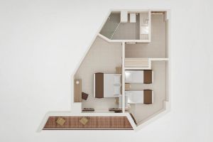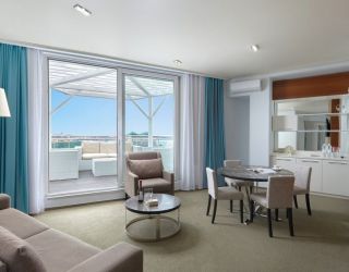 Просторный номер с террасой и тремя комнатами для комфортного размещения четырёх гостей на основных местах и двоих – на дополнительных.
