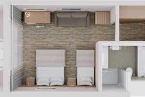 Двухместный номер с возможностью размещения ещё двоих гостей позволит вам удобно расположиться на время отдыха.