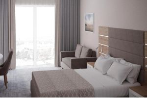 Двухместный двухкомнатный номер с возможностью размещения двоих гостей на дополнительных местах позволит с комфортом провести время в отпуске.