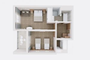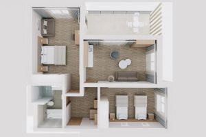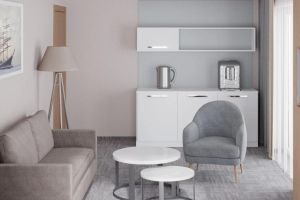 Двухкомнатный номер предназначен для комфортного размещения четырех человек на основных местах и еще одного на дополнительном месте.