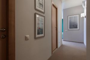 В одной спальне: одна двуспальная кровать, две прикроватные тумбы, стол, стул, шкаф, мини-сейф, телевизор 43 дюйма, телефон (внутренняя связь), сплит-система. Вторая спальня: две односпальные кровати, две прикроватные тумбы, шкаф, телевизор 43 дюйма, сплит-система. В прихожей: чемоданица, панель с крючками, обувница, зеркало. В гостиной: диван, кресло, модуль под ТВ, стол, торшер, кухня, мини-холодильник, телевизор 43 дюймов, сплит-система, чайная станция. На балконе: стол пластиковый, четыре стула пластиковых раскладных, сушилка для белья.