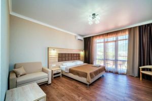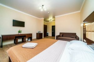 - основные места - двуспальная кровать и раскладной диван, с/у с душем, ТВ, К, мини-холодильник