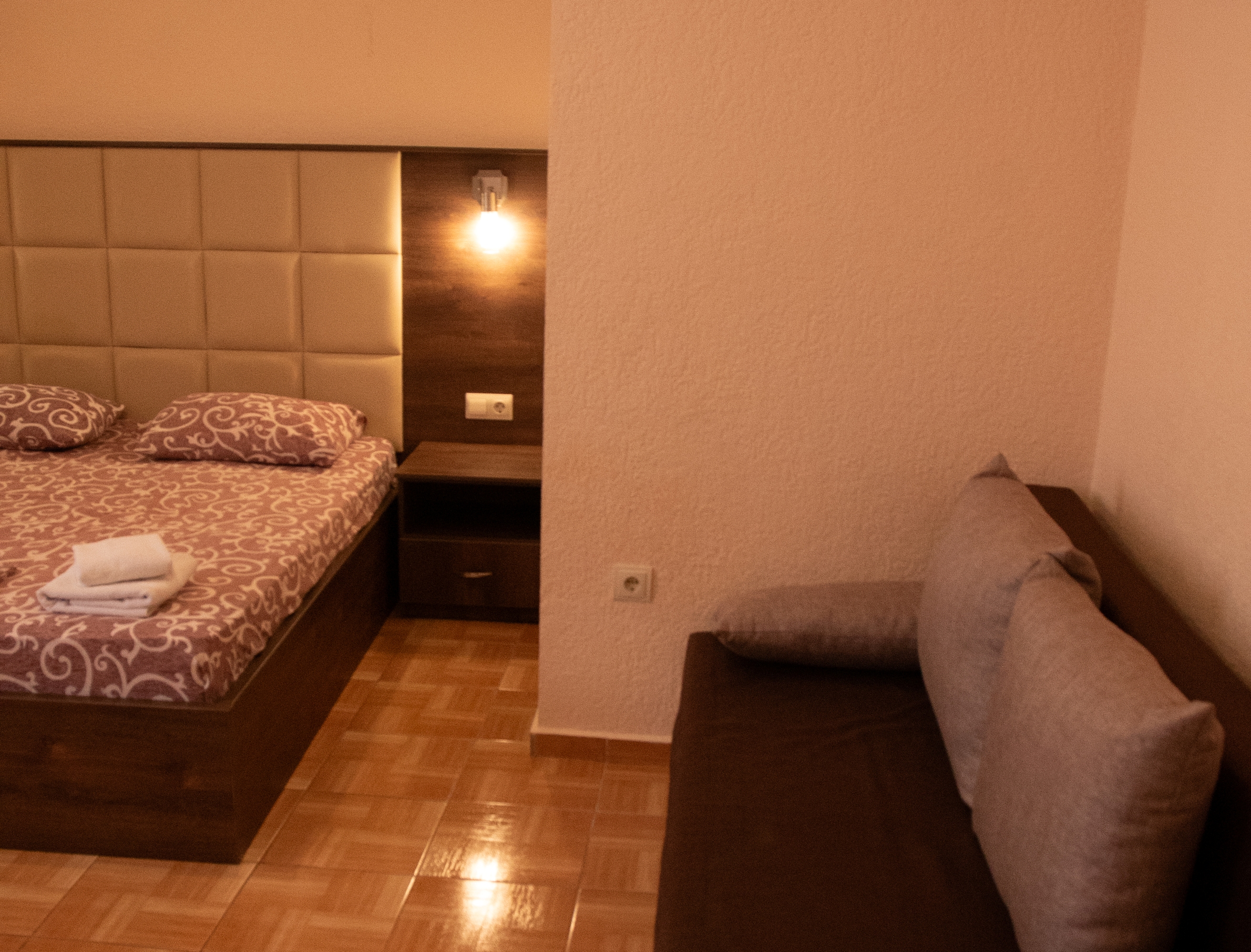 - основные места - двуспальная кровать и двуспальный диван, с/у с душем, ТВ, мини-х, К