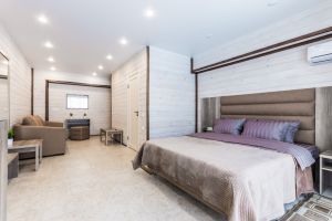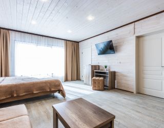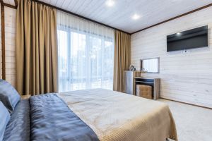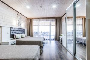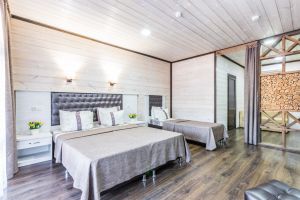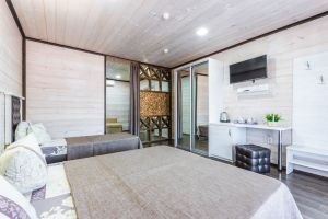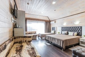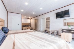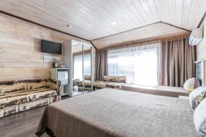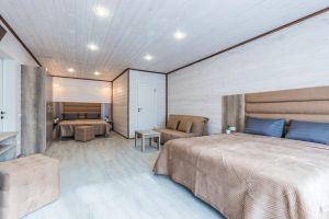 - с/у, тв, х, к, в номере: двуспальная кровать, одна односпальная кровать, два односпальных дивана