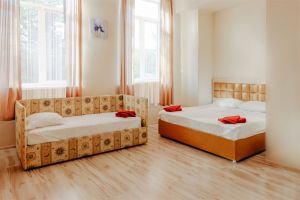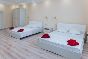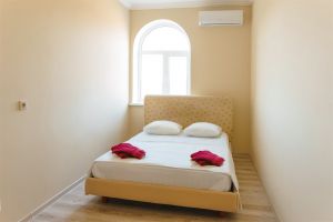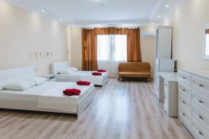 - Однокомнатная четырехместная каюта в Капитанских апартаментах с общей кухней. В каюте две двуспальные кровати, кондиционер, санузел с душем, телевизор , холодильник.