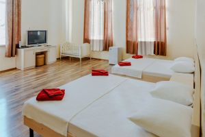 - Однокомнатная шестиместная каюта с кондиционером. В каюте санузел с душем.