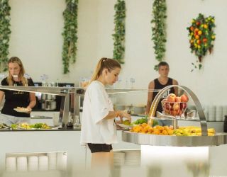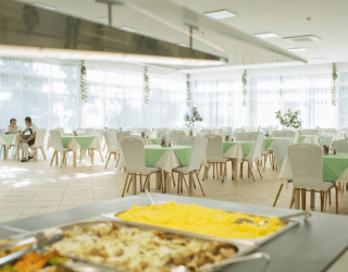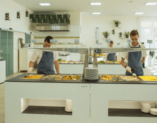 3-разовое питание по системе шведский стол. Вас ждёт разнообразный выбор закусок, первых и вторых блюд, выпечки, напитков. На обед предлагается пиво, на ужин – пиво и вино.