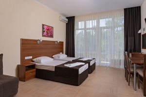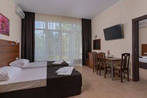 В каждой из комнат свой балкон с прекрасным видом на лес. Площадь 2х комнатного номера около 48 кв.м. включая санузел.