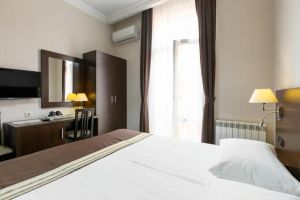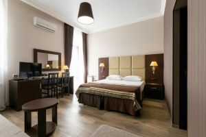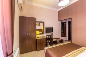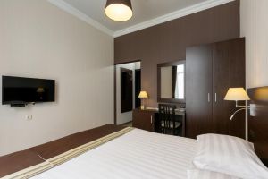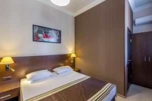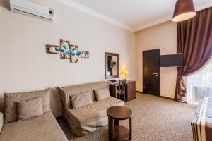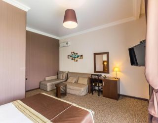 - Спальные места: Две односпальные или большая двуспальная кровать, диван-кровать. с/у с душем, мини-холодильник, ТВ, сплит-система