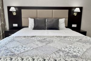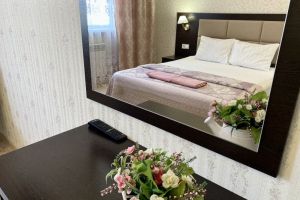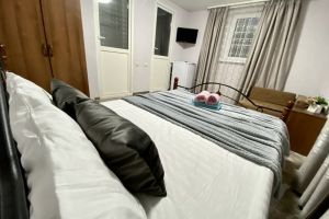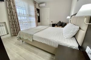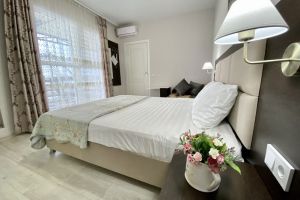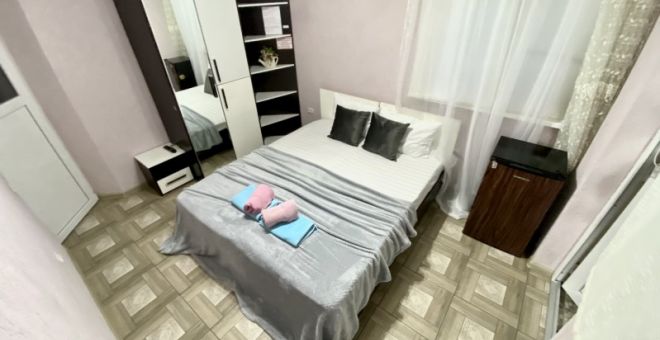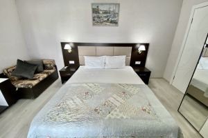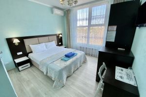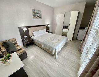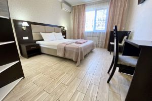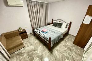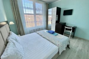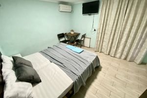 - Кровать двуспальная, шкаф, стол, холодильник, кондиционер, телевизор, санузел (душ+туалет), фен