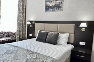- Кровать двуспальная, кресло-кровать, шкаф, холодильник, кондиционер, телевизор, санузел (душ+туалет), фен