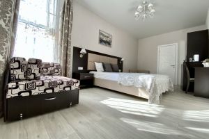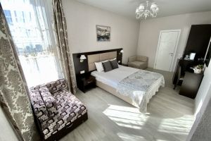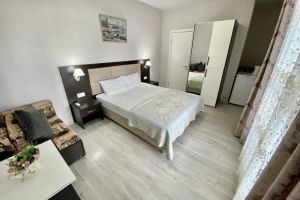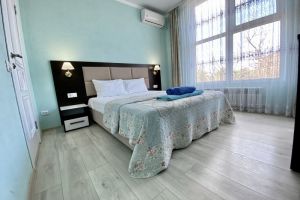 - Кровать двуспальная, два кресла-кровати, шкаф, холодильник, кондиционер, телевизор, санузел (душ+туалет), фен