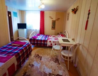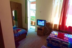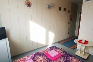 - Три односпальные кровати, шкаф, тумбочки прикроватные, кондиционер, телевизор, санузел (душ+туалет) НА ЭТАЖЕ, холодильник на этаже