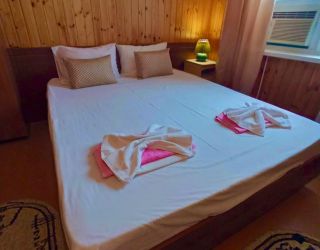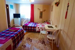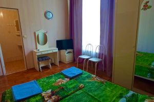- Две двуспальные кровати или Двуспальная кровать+две односпальные, тумбочки прикроватные, шкаф, холодильник, кондиционер, 2 телевизора, санузел (душ+туалет), мини-кухня (чайник, микроволновка, посуда, приборы)
