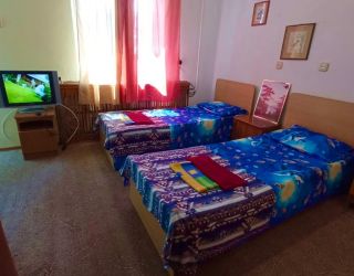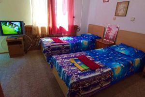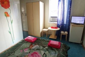 - Две односпальные кровати, шкаф, тумбочки прикроватные, кондиционер, холодильник, телевизор, санузел (душ+туалет)