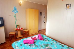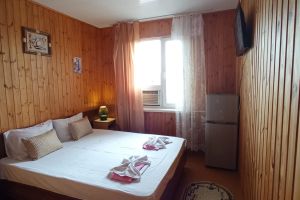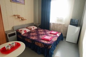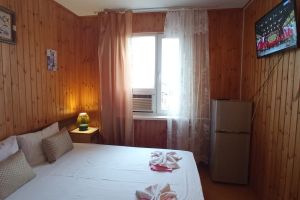 - Кровать двуспальная, тумбочки прикроватные, шкаф, холодильник, кондиционер, телевизор, санузел (душ+туалет)