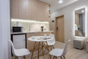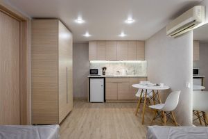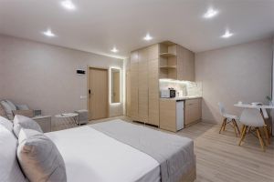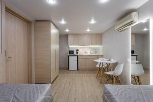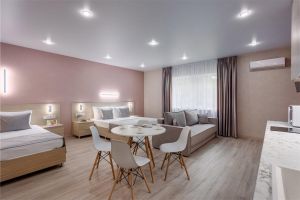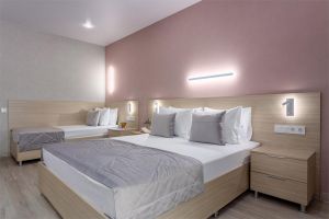 - Полулюкс -это удобный просторный номер , предназначен для семейного отдыха. Этот вариант отличается комбинацией удобства и функциональности, что делает его отличным выбором для семейных каникул. В номере оборудованы комфортабельные спальные места для всей семьи в одной комнате, одна большая кровать для родителей и одна полноценная кровать для взрослого или ребенка , а также большой раскладной диван для еще одного путешественника. В номере есть своя небольшая лаунж зона для семейного время провождения или просмотра интересного фильма. На кухне есть все необходимое для приготовления пищи: обеденный стол и стулья, варочная панель с вытяжкой, холодильник посуда и столовые приборы. Площадь номера -32 кв.м. Есть встроенная кухня. Оснащение: Одна большая кровать Queensize, одна отдельная кровать 160*190 см. прикроватные тумбочки, большой, мягкий диван, журнальный столик, пуфик вместительный шкаф «купе», кондиционер, телевизор, электронные замки. Санитарная комната оборудована современными сантехническими устройствами имеет стильный и функциональный дизайн, удобная душевая кабина, шкафчики для хранения косметических принадлежностей, широкий умывальник, чистые полотенца. В комплект каждого гостя входит:• Полотенца• Халат• Туалетная бумага• Фен• Шампунь