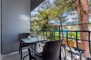 - Комфорт Категория номера Комфорт -это домашний уют в сочетании со стильным дизайном, создают неповторимую атмосферу для романтических встреч и просто приятного времяпровождения. Спокойный стиль комнаты и элементы шикарной мягкой мебели прекрасно дополняют друг друга создавая неповторимый, выдержанный «природный» стиль .Спокойные цвета мебели и оттенки текстиля не раздражают глаз, а песочная встроенная кухня создает теплый бархатный акцент в интерьере. Площадь номера -24 кв.м. Есть встроенная кухня и балкон с видом на уютный внутренний дворик или дальние горы. Оснащение: Одна большая кровать Queensize прикроватные тумбочки, раскладное кресло -кровать, журнальный столик, пуфик , вместительный шкаф «купе», Кондиционер, телевизор, электронные замки, столик со стульями на балконе. Санитарная комната оборудована современными сантехническими устройствами имеет стильный и функциональный дизайн, удобная душевая кабина, шкафчики для хранения косметических принадлежностей, широкий умывальник, чистые полотенца. В комплект каждого гостя входит:• Полотенца• Туалетная бумага• Фен• Шампунь