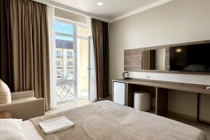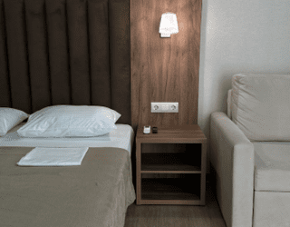 Количество комнат 1-комнатныйКоличество комнат 1-комнатныйТип номера СтандартныйДополнительное место диван или кресло-кроватьКол-во доп. мест 1 Кол-во основных мест 2 Площадь (кв. м) 21,5 Этаж 1 Мебель вешалказеркалокровати односпальные /одна двуспальная кроватьприкроватные тумбочкипуфикстолшкафОборудование мини-холодильниксейфсплит-системателевизорэлектрочайникСанузел с душемтуалетные принадлежностифенСервис Wi-Fi бесплатносмена полотенецсмена постельного бельяуборка номераКоличество комнат 1-комнатныйКоличество комнат 1-комнатныйТип номера СтандартныйДополнительное место диван или кресло-кроватьКол-во доп. мест 1 Кол-во основных мест 2 Площадь (кв. м) 21,5 Этаж 1-3 Балкон с мебелью и сушилкойМебель вешалказеркалокровати односпальные /одна двуспальная кроватьприкроватные тумбочкипуфикстолшкафОборудование мини-холодильниксейфсплит-системателевизорэлектрочайникСанузел с душемтуалетные принадлежностифенСервис Wi-Fi бесплатносмена полотенецсмена постельного бельяуборка номераКоличество комнат 1-комнатныйКоличество комнат 1-комнатныйТип номера СтандартныйДополнительное место кресло-кроватьКол-во доп. мест 1 Кол-во основных мест 3 Площадь (кв. м) 27 Этаж 1 Мебель вешалказеркалокровать двуспальнаякровать односпальнаяприкроватные тумбочкипуфикстолшкафОборудование мини-холодильниксейфсплит-системателевизорэлектрочайникСанузел с душемтуалетные принадлежностифенСервис Wi-Fi бесплатносмена полотенецсмена постельного бельяуборка номераКоличество комнат 1-комнатныйКоличество комнат 1-комнатныйТип номера СтандартныйДополнительное место кресло-кроватьКол-во доп. мест 1 Кол-во основных мест 3 Площадь (кв. м) 27 Этаж 2,3 Балкон с мебелью и сушилкойМебель вешалказеркалокровать двуспальнаякровать односпальнаяприкроватные тумбочкипуфикстолшкафОборудование мини-холодильниксейфсплит-системателевизорэлектрочайникСанузел с душемтуалетные принадлежностифенСервис Wi-Fi бесплатносмена полотенецсмена постельного бельяуборка номераКоличество комнат 2-комнатныйКоличество комнат 2-комнатныйТип номера СтандартныйКол-во основных мест 4 Площадь (кв. м) 32 Этаж 2,3 Балкон с мебелью и сушилкойМебель вешалкадиван раскладнойзеркалокровать двуспальнаяприкроватные тумбочкипуфикстолстолик журнальныйшкафОборудование мини-холодильниксейфсплит-системателевизорэлектрочайникСанузел с душемтуалетные принадлежностифенСервис Wi-Fi бесплатносмена полотенецсмена постельного бельяуборка номера