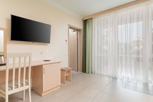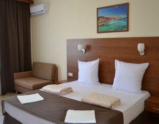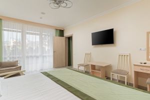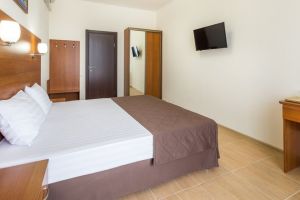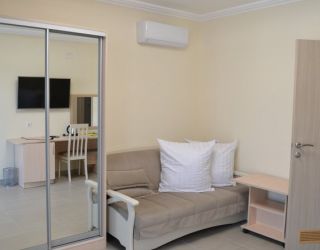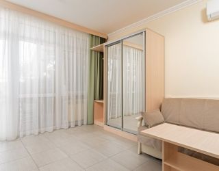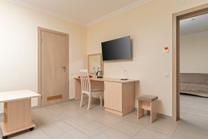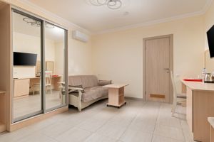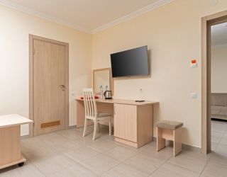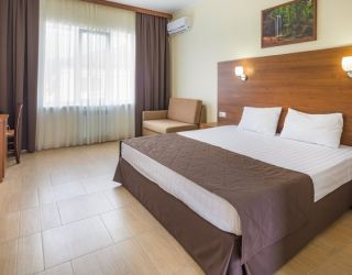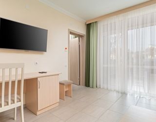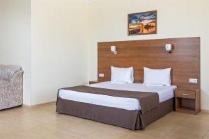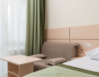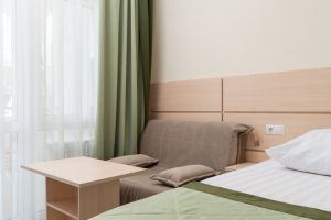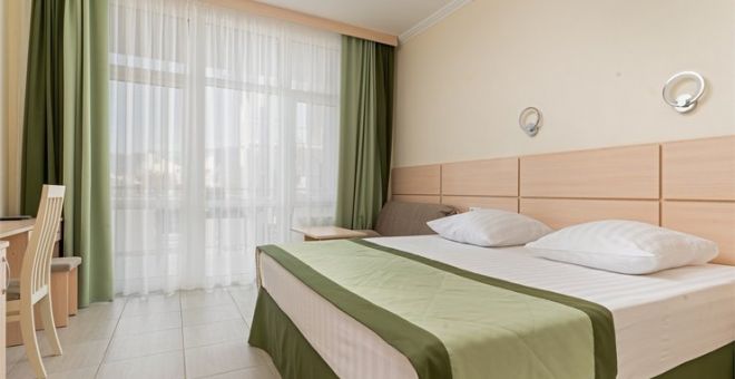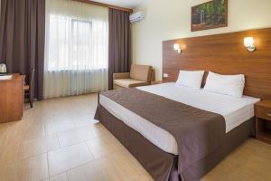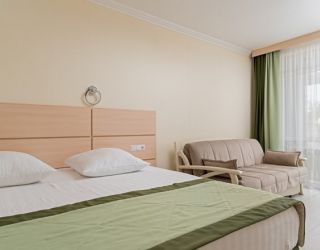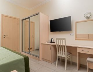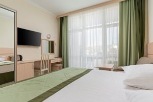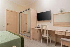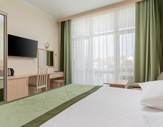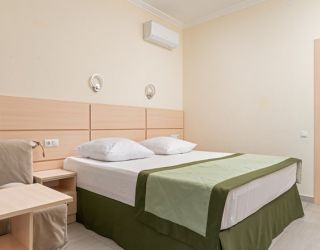 Количество комнат 1-комнатныйТип номера СтандартныйДополнительное место кресло-кровать, еврораскладушкаКол-во доп. мест 2 (2-е только для ребенка 1-13 лет) Кол-во основных мест 2 Площадь (кв. м) 20-21 Балкон не во всех номерахМебель вешалказеркалокресло-кроватькровать двуспальнаяприкроватные тумбочкистолстульяшкафОборудование мини-холодильниксейфсплит-системателевизор ЖКчайный набор посудыэлектрочайникСанузел с душемтуалетные принадлежностифенСервис Wi-Fi бесплатносмена полотенец: 1 раз в 3 днясмена постельного белья: 1 раз в 3 дняуборка номера: 1 раз в 3 дня Обращаем внимание, что номера могут отличаться от представленных на фотографиях.