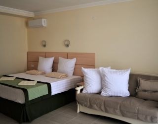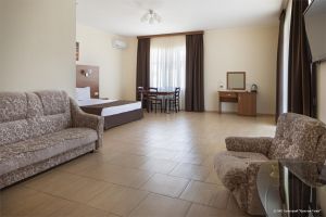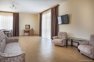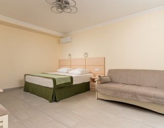 Количество комнат 2-комнатныйТип номера СемейныйДополнительное место раскладной диван: 2Кол-во доп. мест 4 Кол-во основных мест 2 Площадь (кв. м) 40 Мебель вешалкадиван раскладной: 2зеркалокровать двуспальнаяприкроватные тумбочкистолстолик журнальныйстульяшкафОборудование мини-холодильниксейфсплит-системателевизор ЖКчайный набор посудыэлектрочайникСанузел с душемтуалетные принадлежностифенСервис Wi-Fi бесплатносмена полотенец: 1 раз в 3 днясмена постельного белья: 1 раз в 3 дняуборка номера: 1 раз в 3 дняОднокомнатный номер студийного типа с джакузи.