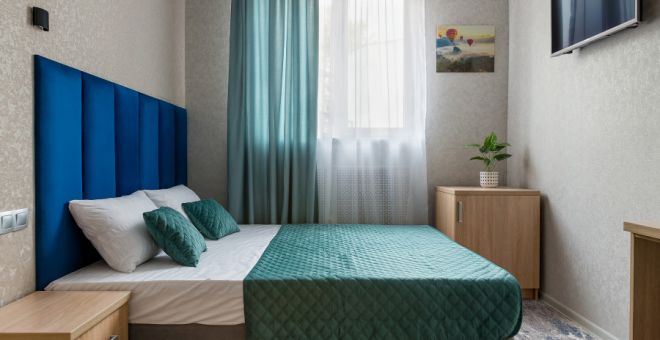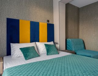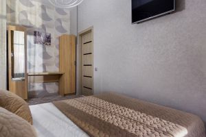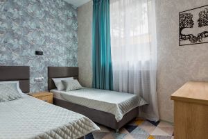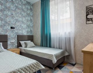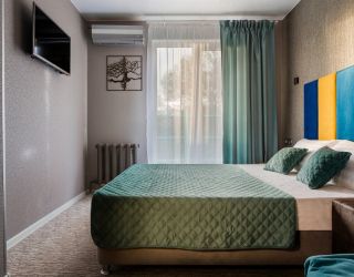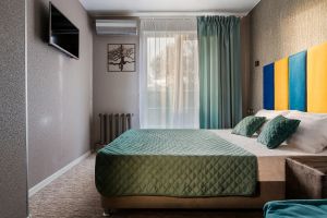 - Комфортный 2-хкомнатный номер. В одной комнате 2-хспальная кровать, удобная мебель, ЖК телевизор, в другой зона отдыха с диваном. Номер оснащен всем необходимым: кондиционер, мини-холодильник, рабочая зона с письменным столом,Wi-Fi.