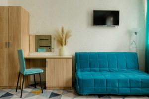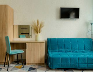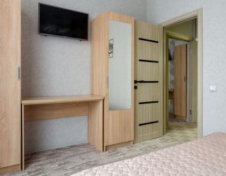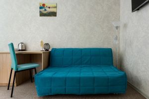 - В номере есть все для комфортного отдыха. 2-х спальная кровать, раскладной диван, тумбочки, шкаф, рабочая зона с письменным столом, кондиционер, мини-холодильник, чайник, ЖК телевизор, Wi-Fi.