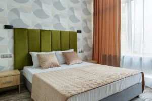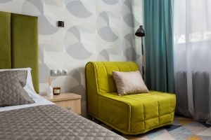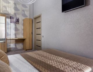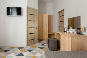 - В номере 2-х спальная кровать 160х200, кресло-кровать. Кондиционер, чайник, мини-холодильник, шкаф, прикроватные тумбочки, рабочая зона с письменным столом, Wi-Fi