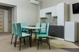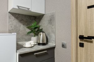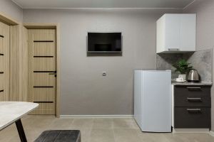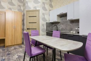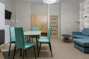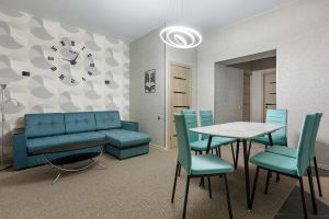 - Наши апартаменты - это просторное пространство, разделенное на 3 комфортные зоны. Спальня с широкой кроватью, ортопедическим матрасом, удобными подушками и белоснежным бельем. Студия с кухней, обеденной зоной , удобным раскладным диваном создаст атмосферу