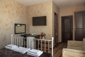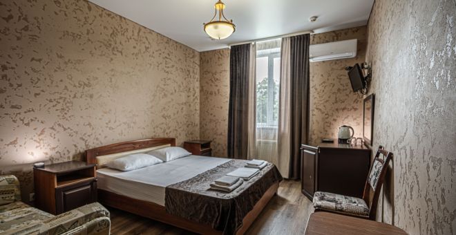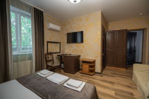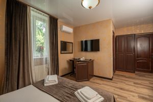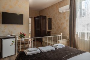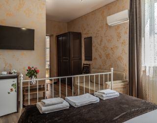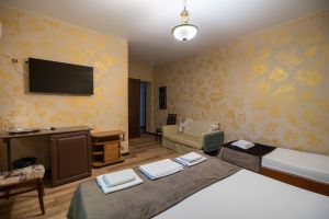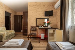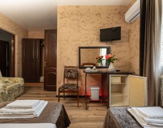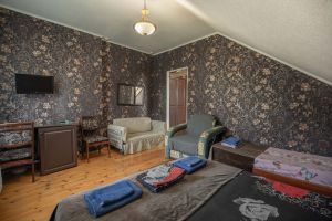 - 2-спальная + 2 1-спальные кровати, с\у, душ. ТВ, мини-Х, К, wi-fi