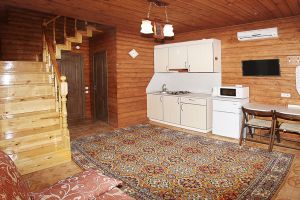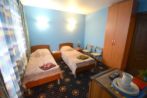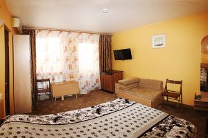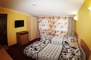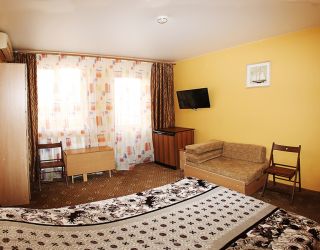 - Основные места: 2 односпальные кровати и 2-спальный диван; с/у,душ,ТВ,Х,К