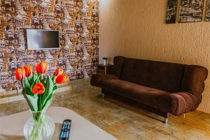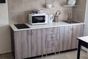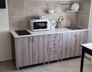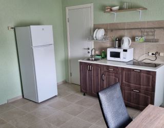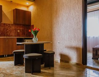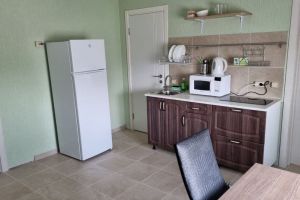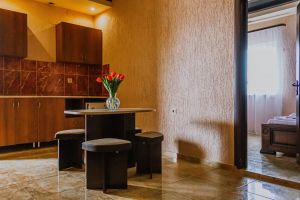 - Двуспальная кровать и двуспальный диван как основное место, мебельный гарнитур, тумбочки прикроватные, холодильник, кондиционер, телевизор, 2 комнаты, санузел (душ+туалет), кухня.