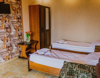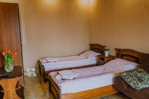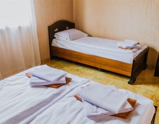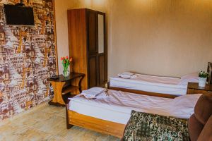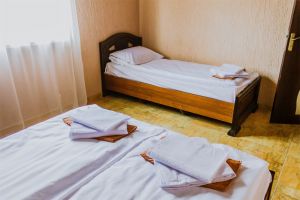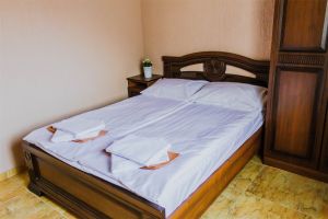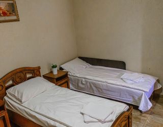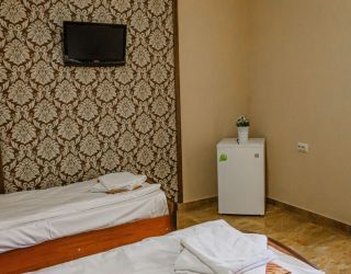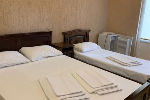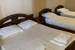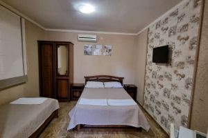 - Двуспальная и односпальные кровати, мебельный гарнитур, тумбочки прикроватные, холодильник, кондиционер, телевизор, санузел (душ+туалет).