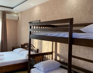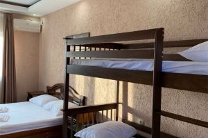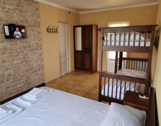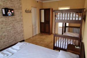 - Двуспальная и двухъярусная кровати, мебельный гарнитур, тумбочки прикроватные, холодильник, кондиционер, телевизор, санузел (душ+туалет).
