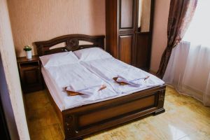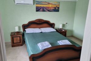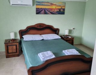 - Кровать двуспальная, мебельный гарнитур, тумбочки прикроватные, холодильник, кондиционер, телевизор, санузел (душ+туалет).