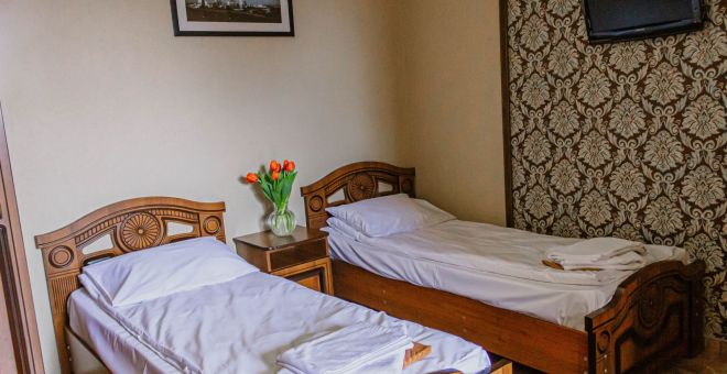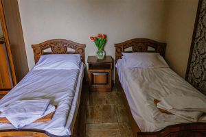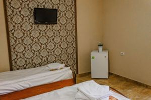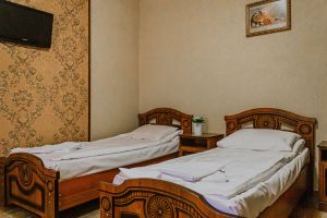 - Кровати 2 раздельные, мебельный гарнитур, тумбочки прикроватные, холодильник, кондиционер, телевизор, санузел (душ+туалет).