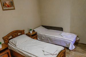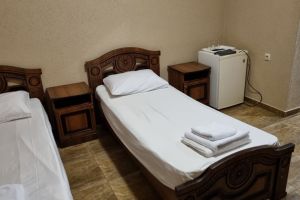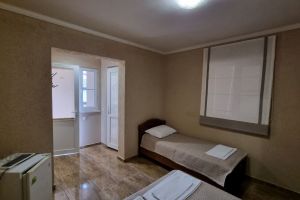 - Кровати 3 раздельные, мебельный гарнитур, тумбочки прикроватные, холодильник, кондиционер, телевизор, санузел (душ+туалет).
