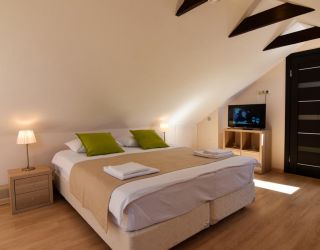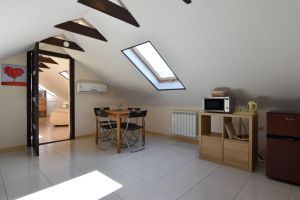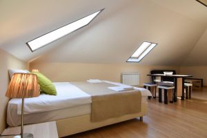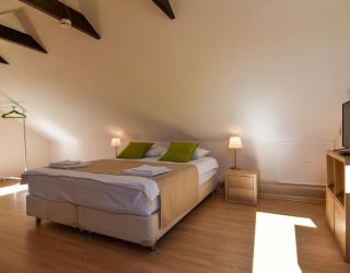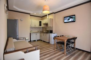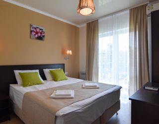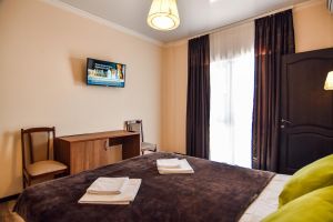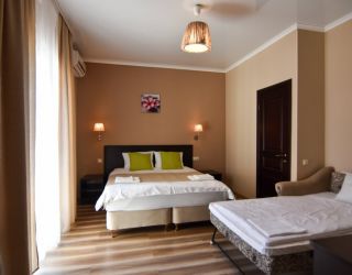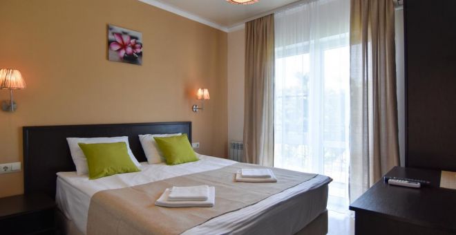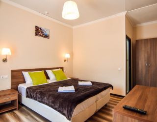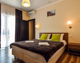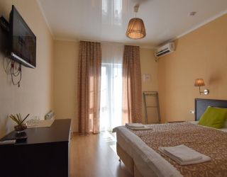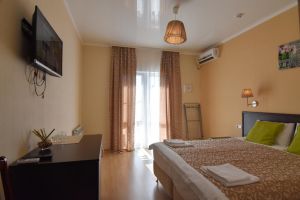 - Основные спальные места: кровать и диван. С/У с душем, ТВ, мини-холодильник, сплит система