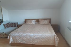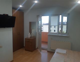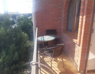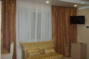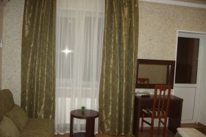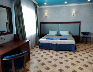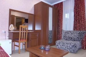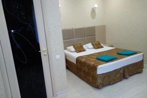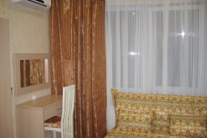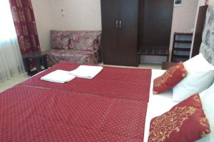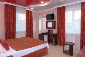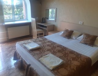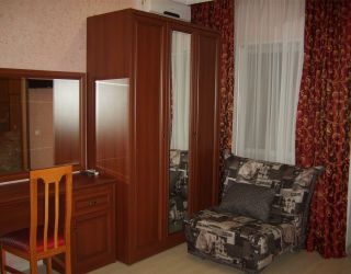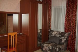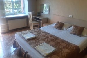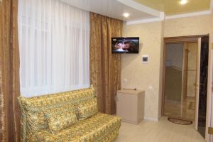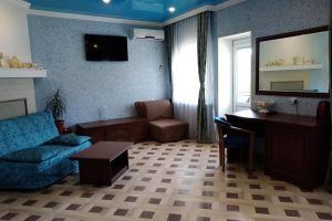 - Двуспальная кровать, кресло-кровать, кабельное телевидение, сплит-система, фен, холодильник, банные полотенца, душ, туалет, балкон, вид на город, Wi-Fi, стул, туалетный столик, шкаф для одежды, гладильная доска, кофейный столик, мангал, мини-кухня, обеден
